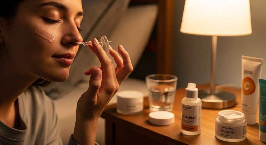 - For glow and dark spots: vitamin C serum, niacinamide, or gentle exfoliating serums with lactic or mandelic acid (not every day).