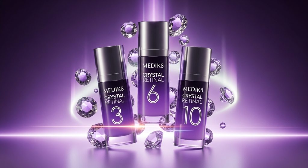 2) Medik8 Crystal Retinal (3/6/10) – Best PM Retinoid for Smoother Texture