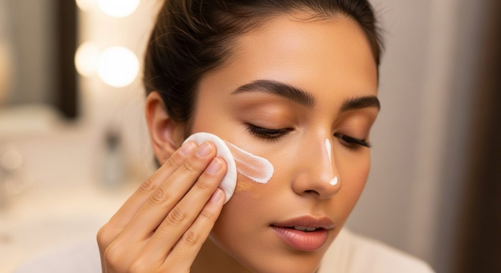 Pat it gently into the skin with your hands instead of using rough cotton pads. This step boosts hydration and helps the rest of your winter skincare routine for dry skin work better.